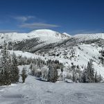 With the repeated strong spring winds, we have a very prominent dust layer on the remaining snow surfaces. This layer changes the albedo of the surface, causes the snow to absorb more of the incoming solar radiation, leads to increased melting and allows spring runoff to occur even more rapidly. This phenomena is challenging on many fronts in managing water in the west and seems to be almost a yearly occurrence. Check out this website for some interesting info about the Colorado Dust on Snow Program.