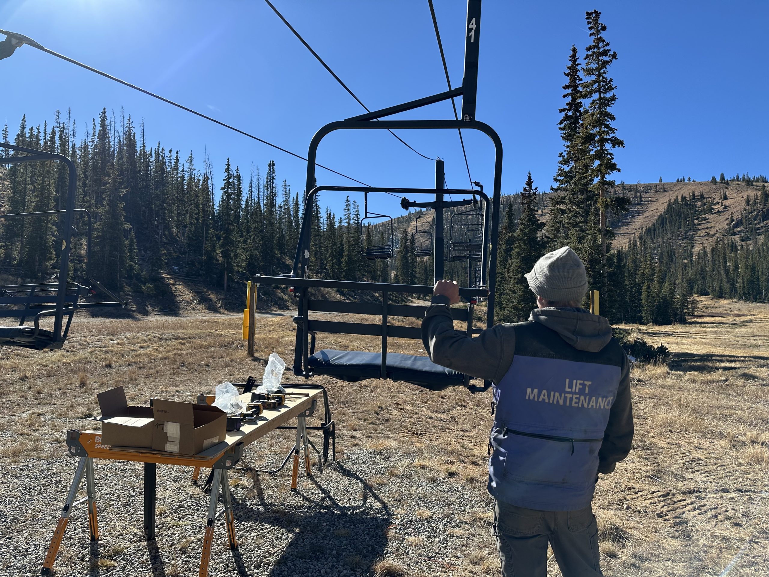 Our Lift Maintenance team has finished up installing restraint bars on the Panorama Lift chairs (carriers). There are one hundred and thirty two carriers on the Pano lift and we now have four aerial lifts that feature these bars. These lifts include Panorama, Pioneer, Tomichi, and Tumbelina. On days when all our lifts are operating this winter, every lift served trail is accessible via a lift that features carriers with a restraint bar (this involves using the Pioneer Lift to access the Frontside Trails and the Tomichi Lift to access No Name Basin and/or the Breezeway Terrain).