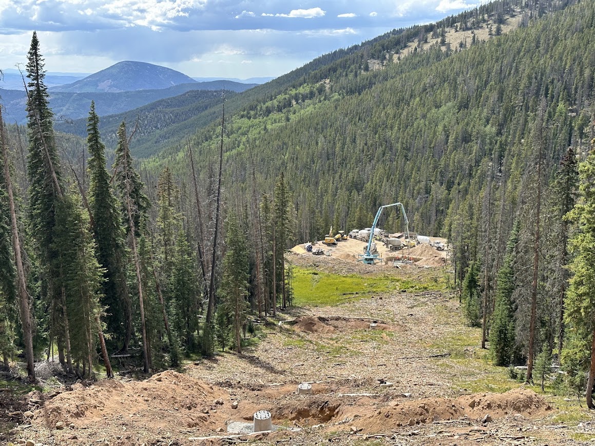 The foundation for the bottom return terminal is being constructed this week with the forms built and the spread footer poured. It was quite a journey for the concrete drivers from Salida up and over the Continental Divide and it took seven trucks to get the slab poured. The return terminal column and operator house foundations will now be formed with one more day of concrete to complete the bottom foundations. Once those foundations are in place, the Skytrac team will hang the steel frame, return bullwheel and install the bottom operator house. Progress continues.
