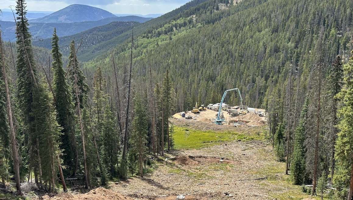 Here is a look at the backside terrain in No Name Basin. The road is complete to the bottom terminal and tower foundations are being backfilled. The bottom terminal is under construction and towers will be standing soon. It’s coming together!